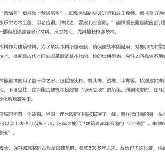 正是凭借这些非凡的能力,蒯祥于明成祖朱棣北迁京师、兴建紫禁城之际脱颖而出。彼时,负责紫禁城修建工作的礼部尚书宋礼,邀蒯福出任“木工首”。但考虑到工程浩大,蒯福因年事已高推荐了自己的儿子蒯祥接任这一重任。